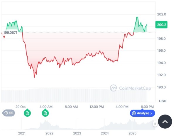 The XRP and Solana ETF projects have drawn significant attention this quarter. At the time of writing, XRP is displaying over 6% of weekly gains and trading at $196.07. Meanwhile, due to mixed ETF impacts, there has been a decline of over 1.4% in the last 24 hours.