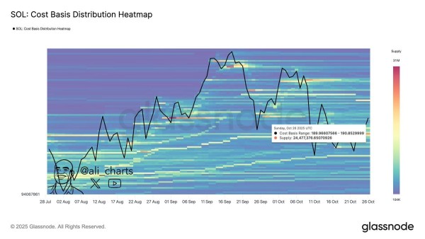 According to Ali Martinez Solana’s price prediction, 24.5 million SOL were accumulated at around $189. That’s now a major support zone to watch!
