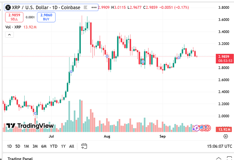 The price of XRP now is $2.98, having decreased by 1.55% over the last 24 hours. Ripple’s market capitalization is $178.48 billion with a trading capitalization of $3.72 billion, down 29.38% from yesterday. XRP Price Prediction for the majority of investors is primarily determined by trends in liquidity and overall altcoin market sentiment.
